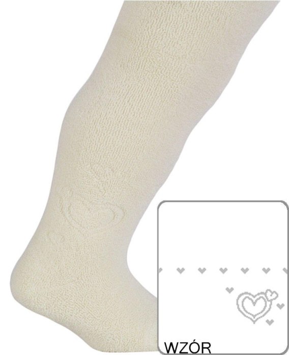 Rajstopy wzorzyste bawełniane z frotte zewnętrzną. Skład: Bawełna 92%, Poliamid 6%, Elastan 2%.