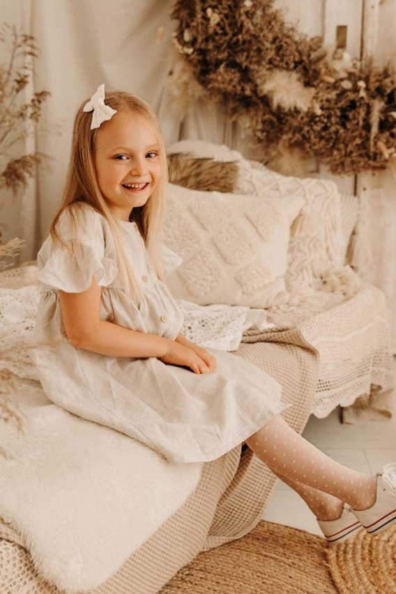 Rajstopy dziecięce w drobne serduszka.